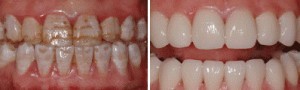 2、中、重度氟斑牙首选纯韩仿生美牙冠、瓷贴面。