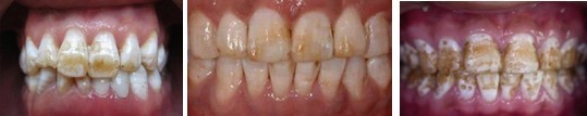 白垩型(轻度):牙面失去正常光泽,出现不透明斑块;
